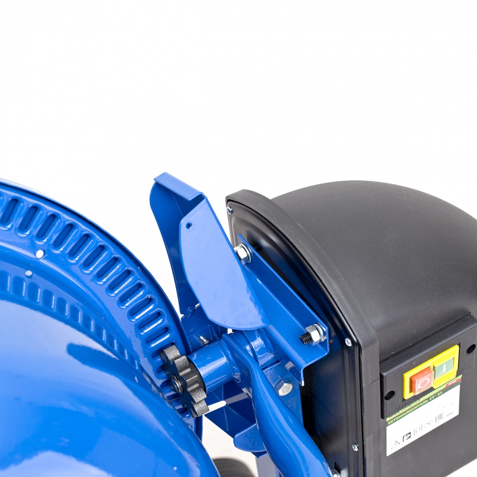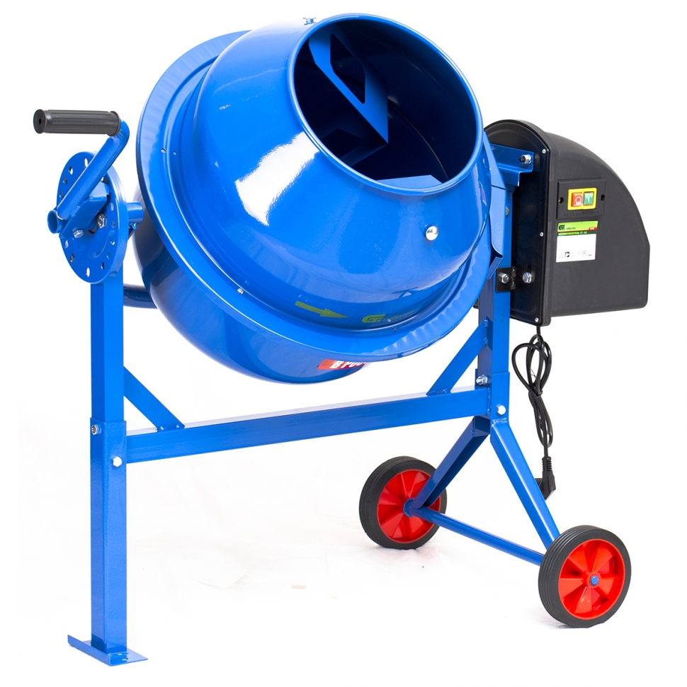 Предназначен для приготовления строительных бетонных смесей. Защитный кожух предотвращает попадание инертных материалов на двигатель.