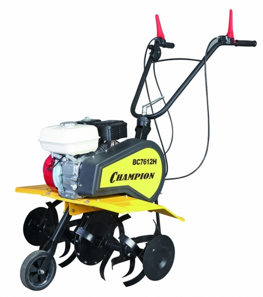 Champion ВC 7612H - культиватор с японским четырехтактным двигателем Honda. Используется данная машина для обработки земельных участков. Модель оснащена всеми необходимыми культиватору функциями: регулируемая путем изменения количества фрез ширина прохода (до 850 мм), наличие реверса; опорное колесо, складная ручка для удобства транспортировки.