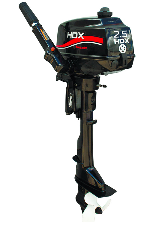 Лодочный мотор 2-х тактный HDX Titanium T2.5 BMS - считается более усовершенствованной моделью. Изменен колпак двигателя, он оборудован приспособлением для приглушения звука работающего мотора, это можно даже определить на слух, не прибегая к экспертному мнению. Отмечена устойчивая работа мотора при совсем малых оборотах. Заводится и управляется вручную. Служит долго, неприхотлив в обращении.