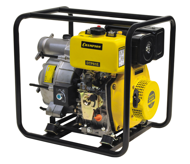 Дизельная мотопомпа Champion DTP81E предназначенная для перекачивания чистой, среднезагрязненной и сильнозагрязненной воды с твердыми частицами диаметром до 25 мм, илом и камнями