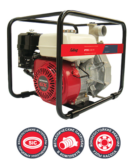 Мотопомпа бензиновая FUBAG PTH 400 H может применяться на сельскохозяйственных объектах. Небольшая и легкая, она отлично подходит для организации системы полива. Незаменима при пожарах в качестве сдерживающего источника до приезда пожарного расчета. Агрегат отличается повышенной производительностью - до 1000 литров жидкости в минуту. Мотопомпа оснащена мощным двигателем HONDA GX160, что обеспечивает качественную и бесперебойную работу. Рамная конструкция защищает составные элементы от механических повреждений и облегчает транспортировку.