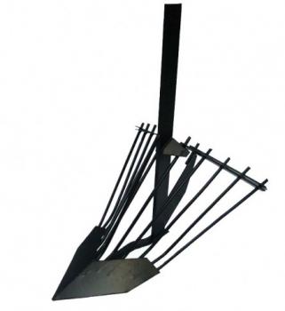 Основное предназначение усиленного картофелекопателя – это сборка урожая картофеля и других корнеплодов. Принцип работы картофелекопателя прост: инструмент приподнимает землю вместе c картофелем, почва осыпается, и картофель остается на поверхности. Установка усиленного картофелекопателя на культиватор производится с помощью сцепки. Для того чтобы выкапывания картофеля было более качественным, картофелекопатель следует установить в гнездо универсальной сцепки, которая позволяет регулировать угол его атаки. Выкопать картофель без такой сцепки практически невозможно. При работе с картофелекопателем на культиватор устанавливаются большие высокие колеса, которые способны проходить над грядкой с урожаем, а не по междурядью. Многие начинающие фермеры озадачиваются вопросом, какая глубина идеальна для картофелекопателя. Есть некоторые рекомендации по выставлению глубины. При помощи универсальной сцепки агрегат следует наклонить под небольшим углом таким образом, чтобы лезвие инструмента шло ниже, чем слой картофеля. Если лезвие будет выше или в уровень с урожаем, то при выкапывании картофель будет поврежден. Чтобы подобрать оптимальную глубину нужно пройтись культиватором по небольшой грядке, остановить машину и посмотреть есть ли среди выкопанного картофеля поврежденные клумбы. Если таковые имеются, значит, следует увеличить глубину хода. При правильной установке глубины на клумбах не должно быть порезов. Корнеплод также может быть поврежден и железными колесами, поэтому важно, чтобы ряды были ровными и находились на достаточном друг от друга расстоянии. При работе с картофелекопателем рекомендуется вначале выкапывать нечетные ряды, затем собрать урожай и приступать к четным рядам. Работа с картофелекопателем не является сложной, но обязательно нужно соблюдать технику безопасности и учитывать некоторые особенности используемого в работе культиватора. Если агрегат оснащен коробкой передач, на которой имеется задняя скорость, то пользоваться ей нужно с особой осторожностью: включать задний ход при заглубленном в грунт картофелекопателе нельзя. Такое действие приводит к поломкам машины. Поэтому перед тем как включить заднюю скорость сначала нужно наклонить культиватор так, чтобы картофелекопатель вышел из почвы.